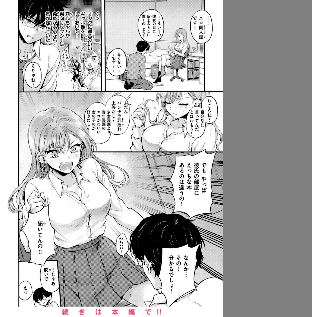 彼女の莉心(りこ)ちゃんはギャルだけどバリバリのオタク。ある日、彼氏の家で発見したエロ同人誌に嫉妬してしまって……?
