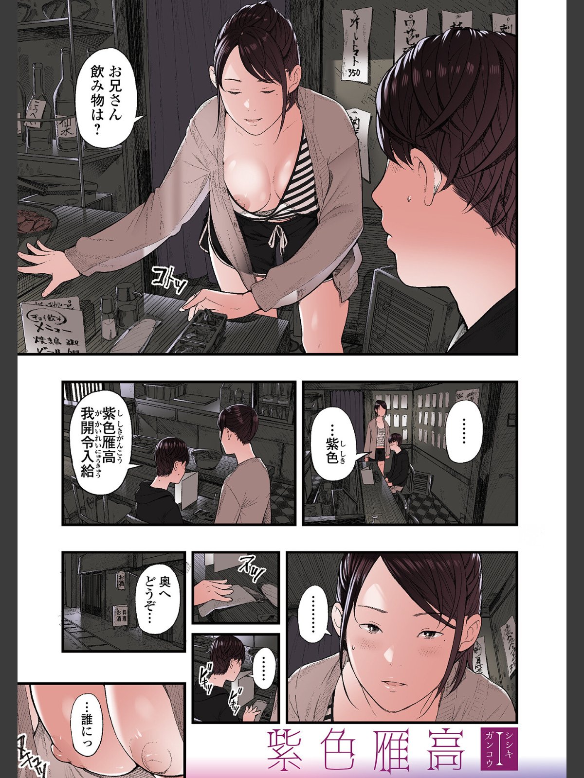 ◇色っぽいお姉さんの営むお店で呟く合言葉は「紫色雁高我開令入給」。いったいナニが起きちゃうの? 旅館の離れに待っていたのは浴衣姿の美女。ゆっくりと騎乗位で味わわれる僕がママ活の果てに見たものは? フェリーのトイレに籠もった青年とメガネ妻。だがドアの外に旦那がっ…!? 押し入った家の人妻は縛られ吊されていた。抵抗できない私を童貞クンが弄ぶ。酒蔵のオンナはたっぷり焦らして寝かせれば…。友達のお母さんがいやらしい。遊びに行くたびボクはおちんちんをいじられて…。ネットカフェの客はまさかの愛妻と間男!? 監視カメラがあるのも知らず二人は…。義理の母の下着でオナる快感。隙だらけの義母の誘惑に俺は…。日焼けした兄嫁には水着の跡がくっきりと。海辺で林の中で、開放的なセックスに溺れて…。夫が自宅に招待したのはまさかの元カレ…!? 一コマ一コマに凝縮されたドラマが潜むエロ漫画の最新型がここに!