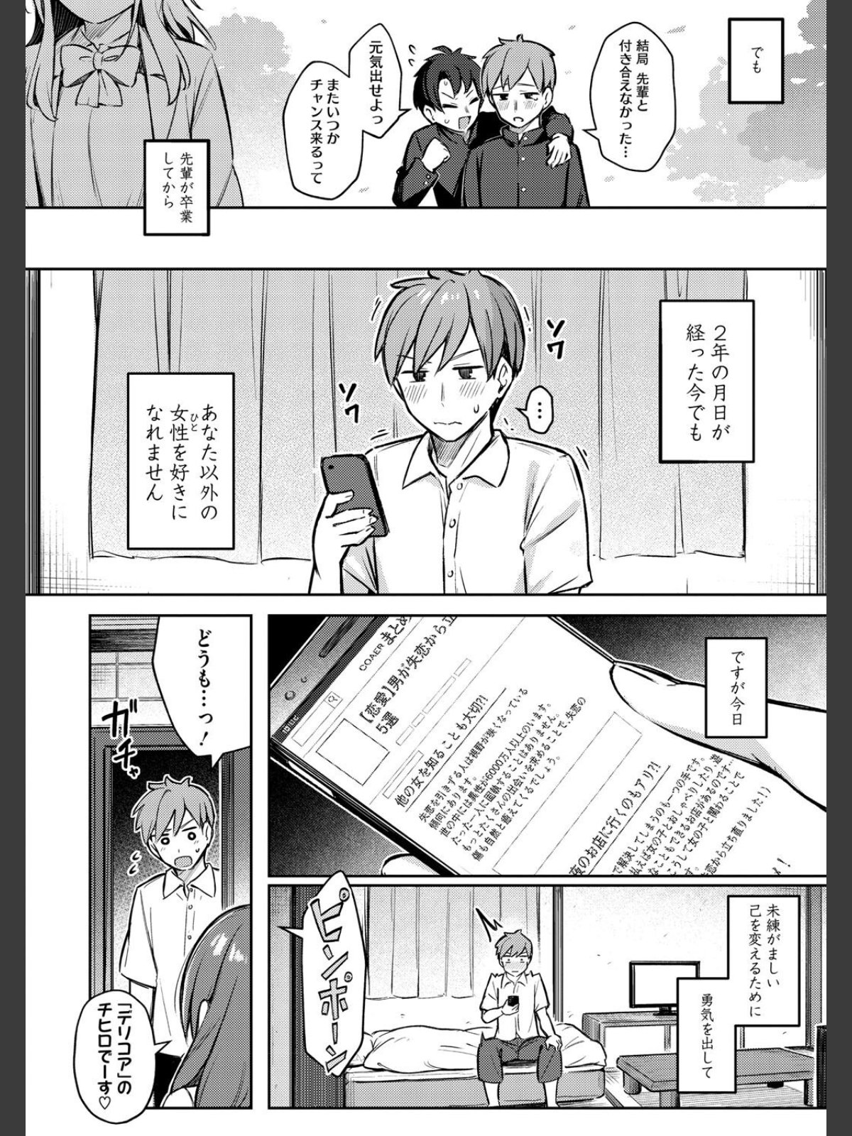 大学生・武内が●校の時に憧れていた智咲先輩への想いを断ち切るために呼んだデリヘル嬢・チヒロさん。