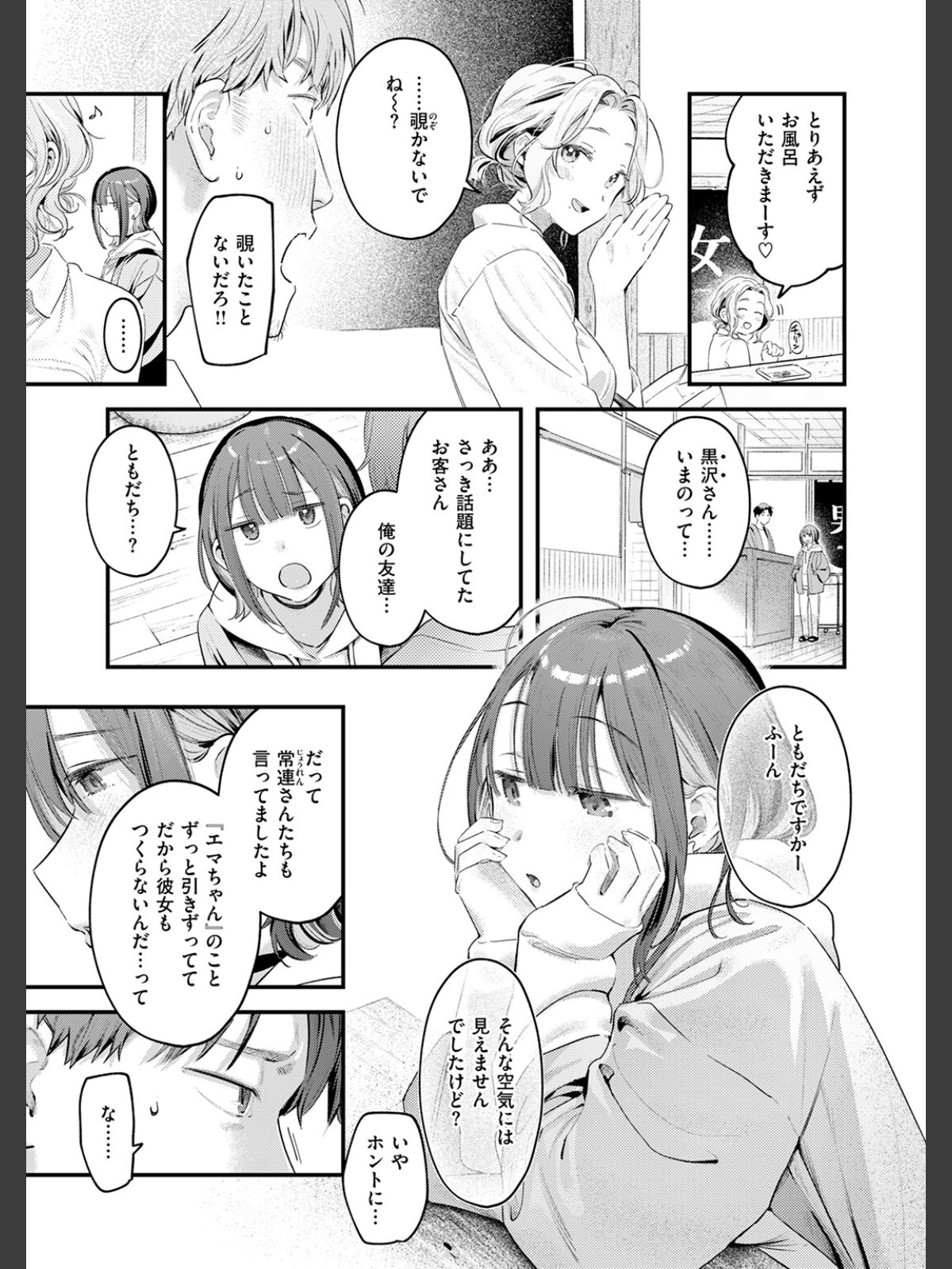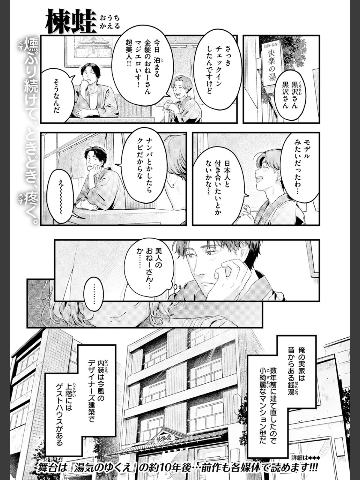 オンボロだった実家銭湯はリノベーションされ、今は俺が中心になって経営を続けている。エマとはかろうじて繋がっていて、たまに近況は教えてくれるものの、あれっきり一度も対面できていない。年下の女性スタッフ・月乃(つきの)ちゃんがなんだか距離を詰めてくるけど、なんとなくかわしてしまう。