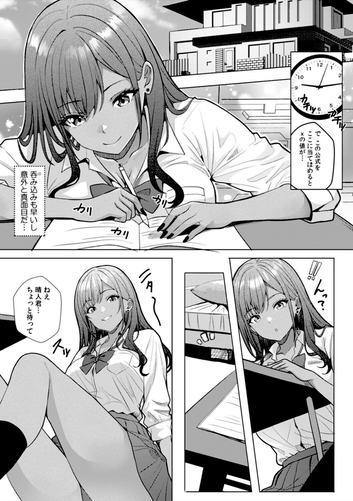 九条の成績アップを聞きつけた、九条のギャル友・辻本も勉強会に参戦!