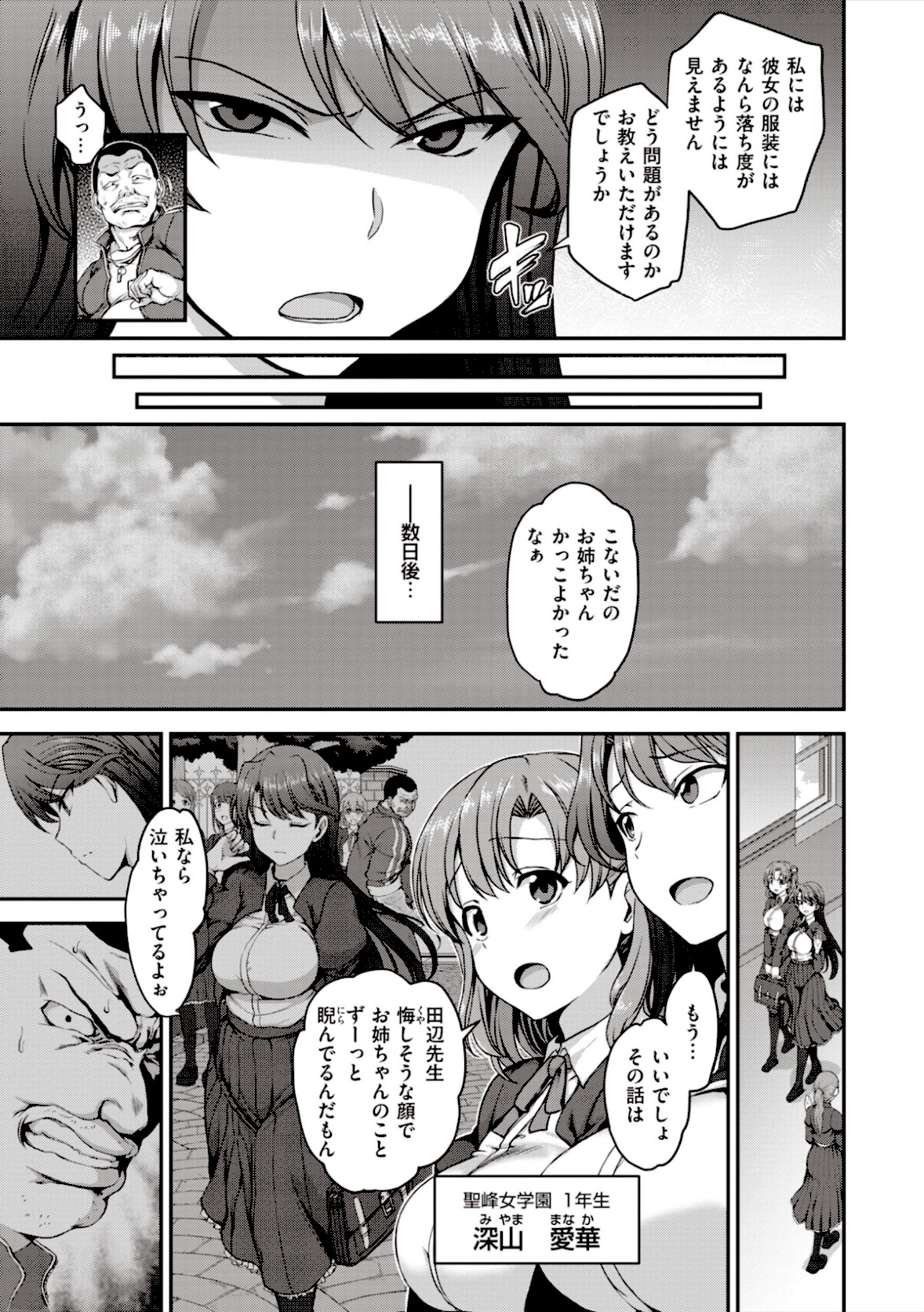 お嬢様学校に通う深山愛華(みやままなか)は教師の戸波(となみ)に騙され、知らない男たちの慰み者になってしまう。彼女を救おうとした姉の瑞希(みずき)も、教師の餌食になってしまい――。