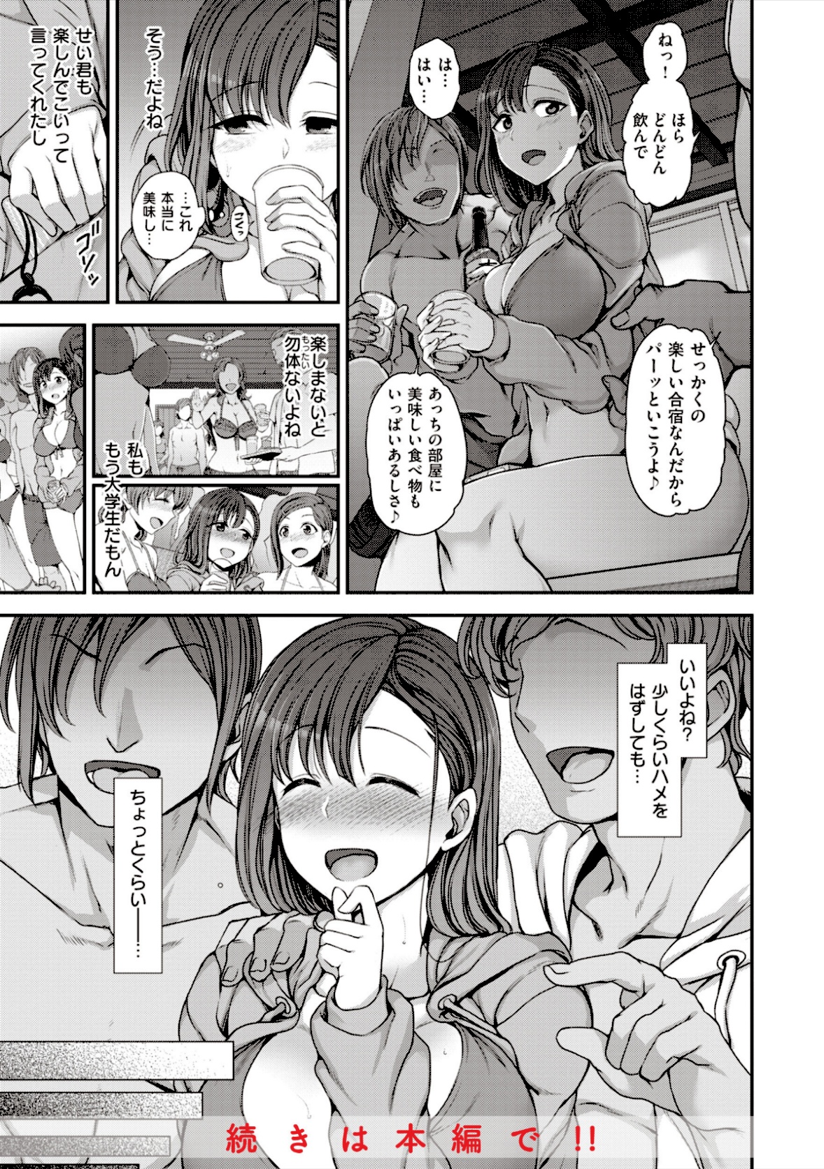 大学生の狭川詩帆(さがわしほ)はサークルの新歓合宿で先輩に勧められるまま苦手なお酒を飲んでしまう。酒に飲まれ淫乱になった彼女は、彼氏がいるのに先輩たちと……。