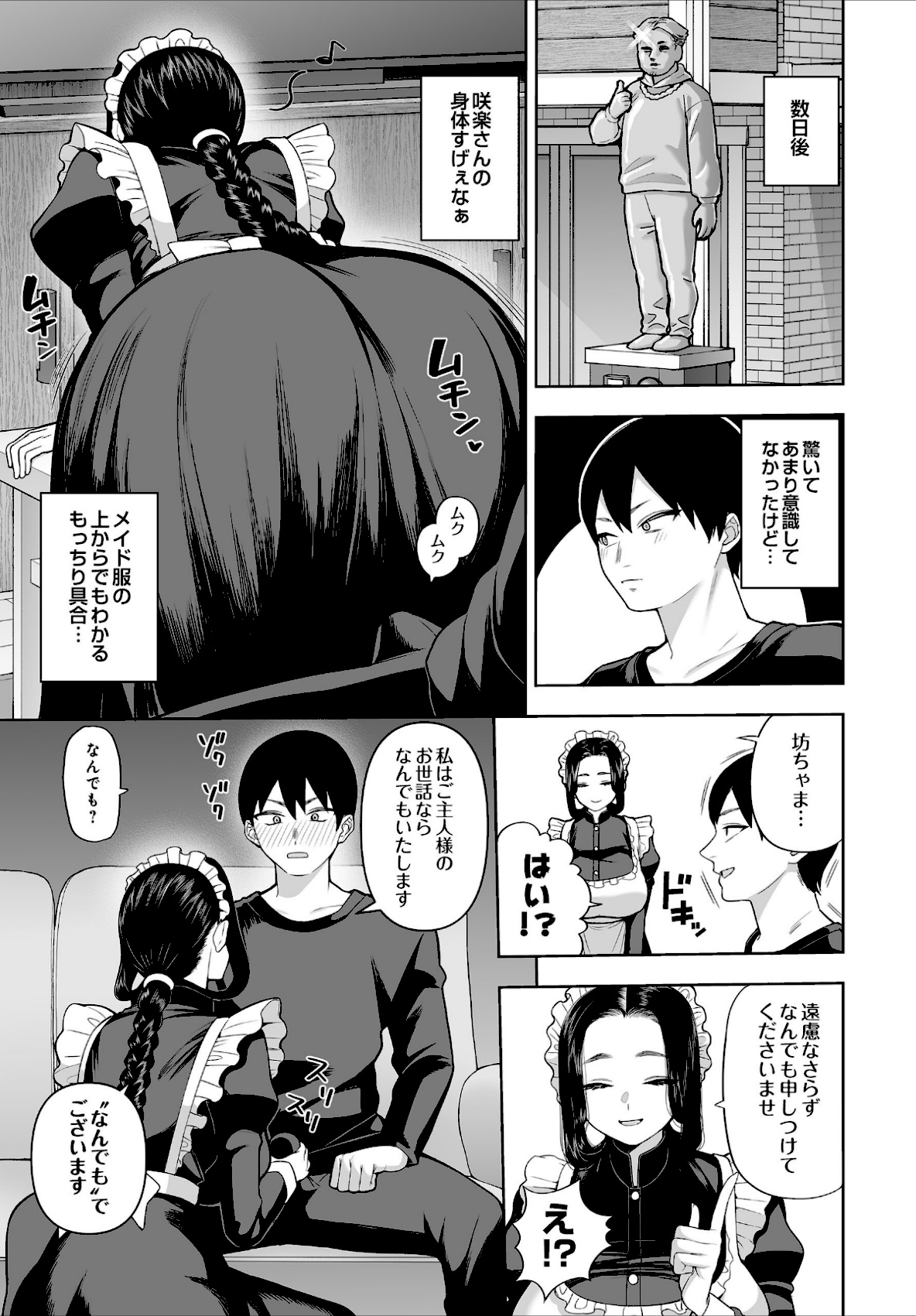 父の事業が成功し、長年憧れだった高級メイドの鳥居咲楽が家にやってきた!そんな咲楽の身体が気になっていた主人公だったが、みかねた咲楽は遠慮せずなんでもお申しつけてほしいと言い出し…