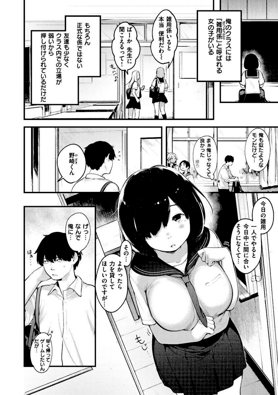 雑用係を押し付けられてるクラスの地味子。でも、体付きはめちゃくてエロくて……。