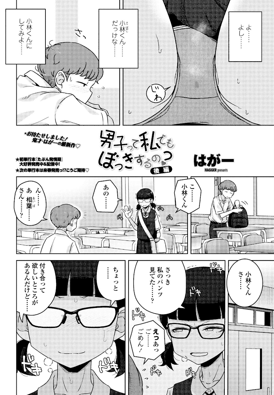 地味な自分が男子を興奮させられる事実に気分をよくしたオタク女子。次々にクラスメイトを誘惑して見抜きをさせていくものの…主導権を握ったつもりで調子に乗っているうちにクラス1可愛い女子による寝取りを見せつけられてしまい!?……はがー「男子って私でもぼっきするの? 後編」