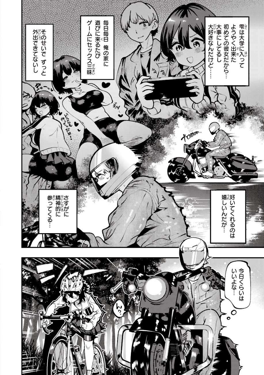 初カノジョの雫(しずく)はゲームとセックスが大好き! たまには気分転換するためひとりでバイクに乗っていると……雫が自転車で追いかけてきた!? 桁外れのフィジカルの雫には敵わず、そのままホテルへ♪