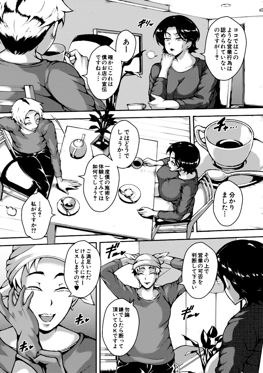 夫とセックスレスなこともあり、怪しみながらも興味を惹かれた舞子は、マッサージ店を営む青年の口車に乗せられてしまい施術を受けることに…。