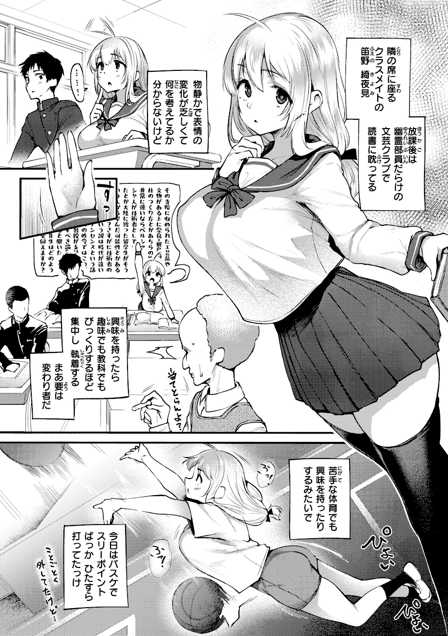 変わり者だが爆乳のクラスメイト・笛野(ふえの)が忘れた体操着でシコっていたところ……本人に見つかってしまった!! もう終わりかと思っていたら、笛野は射精に興味があるようで……。